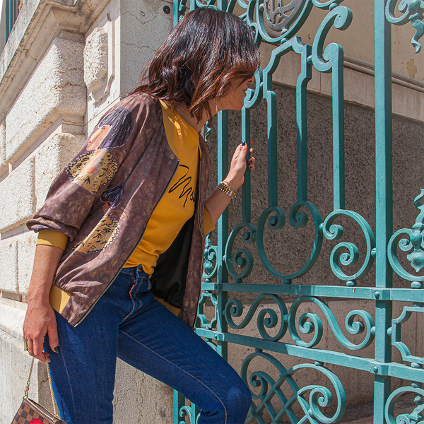 Bomber Etéreo Cara Castanha 165,10 € Desconto de %. IVA incluído. Partilhar Tamanho S M L Comprar Contactar Casaco curto em cetim. Aperta com fecho metálico. Cós ajustável através de elástico mostarda. Forro interior em Cetim preto. Tecido suave e agradável. Dois bolsos laterais. Fabricado em Portugal. S M L Peito 86cm 90cm 94cm Cintura 74cm 78cm 82cm Anca 100cm 104cm 108cm CUIDADOS NA LAVAGEM E SECAGEM Lavar à máquina máximo a 30 graus Centrifugação curta Não utilizar lixívia ou alvejante Não secar à máquina Passar a ferro no máximo a 110 graus Não limpar a seco Tags BOMMBERcasacocastanho Características